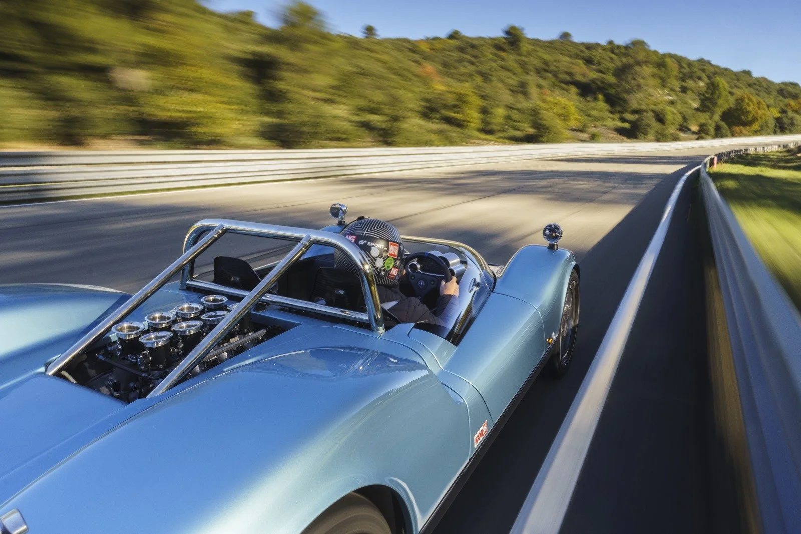 Seated at the wheel you are met with a stunning view forward across an extremely low scuttle framed by the towering profile of the sweeping front wings.